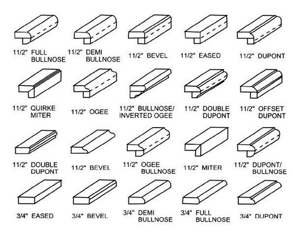 Edge fini | Poli, fasilite, bizote, bullnose, dupont, quirke miter, ogee, miter joint elatriye. | |